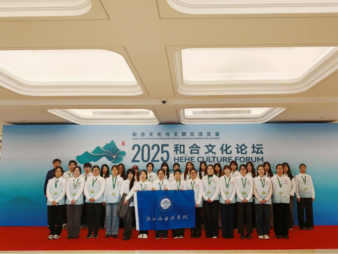 在2025和合文化论坛举办期间,我院师生以专业的服务与饱满的热情,成为盛会中一道亮丽的风景线。来自全校30名志愿者中,我院精心选派的10名师生志愿者组成了服务骨干力量,在礼仪接待、语言服务、嘉宾引导等岗位上展现出出色的外语能力与跨文化沟通素养。他们以细致周到的服务、青春昂扬的风貌,生动诠释了“和合”文化的当代内涵,赢得了与会中外嘉宾的广泛赞誉,充分展现了浙外学子的责任担当与精神风采。