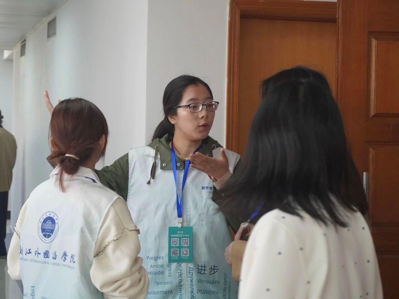 他们以扎实的专业素养与细致入微的服务,为论坛的顺利召开保驾护航。无论是路线指引还是产品解说,“小青荷”自信从容,为嘉宾们带来了优良的服务体验。“第二届到第三届,我见证了良渚论坛的成长,也完成了自己的蜕变。”2024级商务英语专业赵彦尔说,“我希望把浙外英文学院的志愿精神传递下去,让有温度的志愿成为传统。”“那时的我,还未真正踏足那片土地,却已一次次与它‘相遇’。”2024级英语师范专业李优扬坚信,“志愿者不仅是服务者,更是文明互鉴的桥梁。”