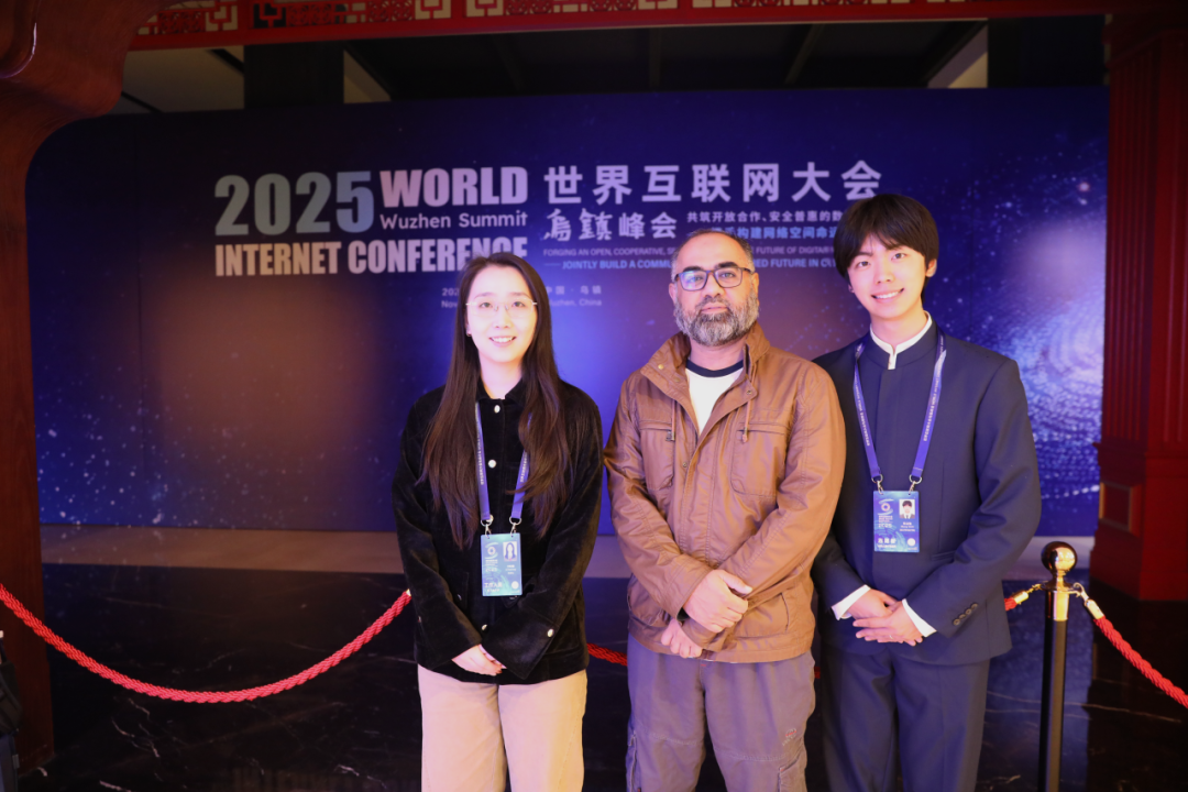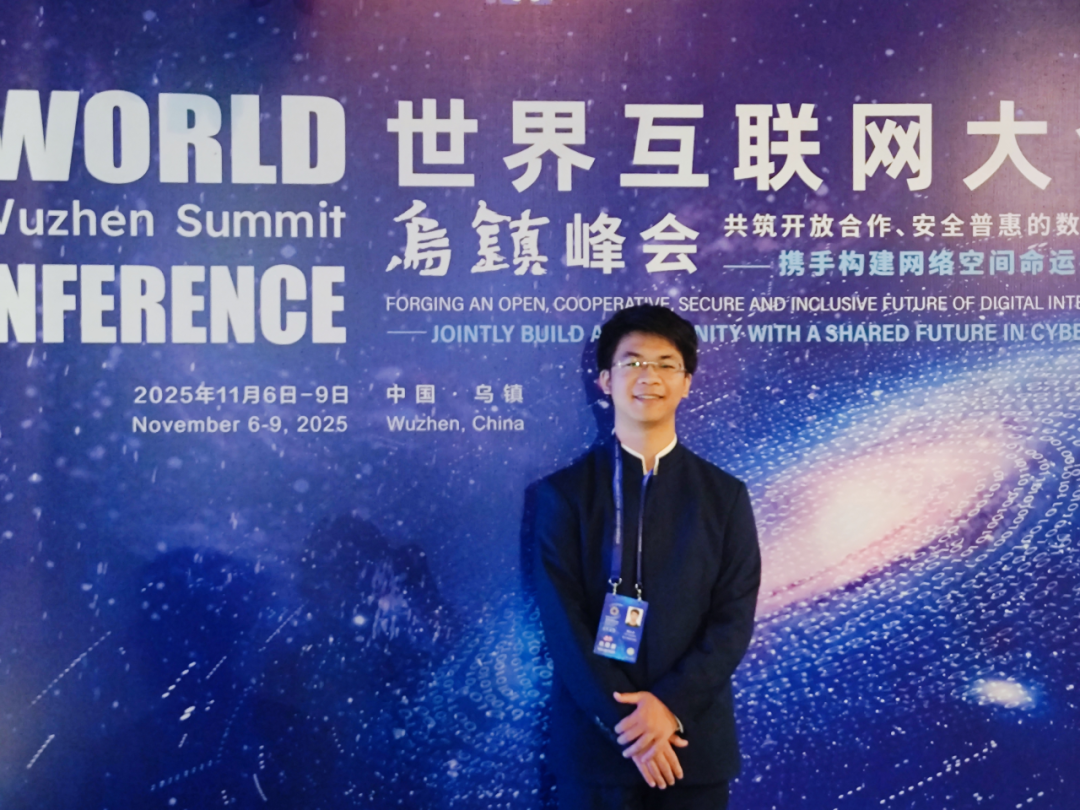 对22级汉语国际教育专业蔡明喆而言,这是他第二次参与乌镇峰会志愿服务。此前,他曾因出色表现获评“杭州亚运会先进个人”,并作为志愿者代表在表彰大会上分享体悟。“从杭州亚运会赛场到乌镇峰会会场,我更体会到,志愿服务不仅是付出,更是成长。”他说。那些熬夜整理的手册、反复演练的礼仪、倾囊相授的经验,当时看似琐碎,现在回望,正是这些点滴,将他从青涩学子蜕变为沉稳专业的服务者。