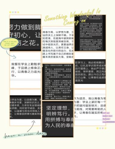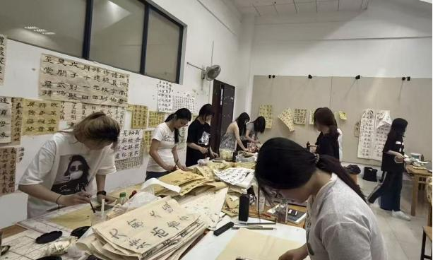 25美术学(师范)1班团支部结合专业特色组织团员开展了“笔墨传情·书写初心”毛笔字社会实践体验活动。在活动中团员们书写了爱国诗词、校训格言等内容。通过相互协作,共同完成校训书法作品,团员们的团队精神和感恩意识逐渐增强。