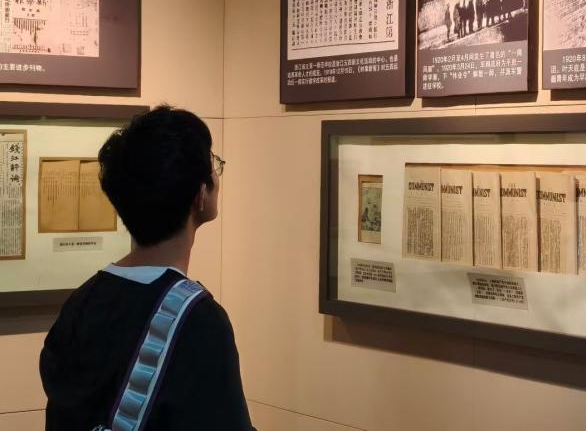23会展1班团支部成员前往中国共产党杭州历史馆参观,在讲解员的带领下,支部成员在沉浸式展览中进一步了解杭州从革命时期到新时代的发展历程。“无论是过去的峥嵘岁月,还是如今的现世安好,每一个年代的都有属于他们的英雄。这是我们最值得追的星,也是我们的成长榜样。”支部书记在讲解结束后,动情与同学们分享心得。其余支部成员也一一表达参观感受。