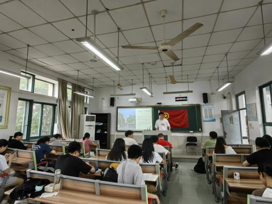 24跨电2班团支部在齐唱团歌中拉开本次团日活动序幕。支部成员重温天安门广场升旗仪式,并抒发各自的“青春宣言”。同学们踊跃分享,并结合个人专业与理想,畅谈未来。最后团支书引导大家进行了深入探讨,从“刻苦学习专业知识”、“积极参与社会实践”等方面明确了未来奋斗的具体路径。