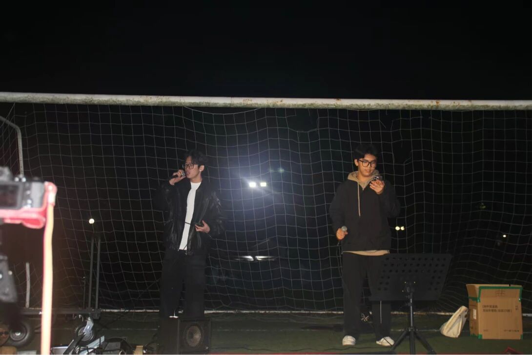 11月中旬,和音吉他社于校园操场先后举办“星空露天KTV”“暖冬弦歌小型音乐会”两场活动,吸引了社团成员及感兴趣的师生参与。前者以自由露天形式展开,由社员伴奏、师生共同合唱;后者为社员汇报演出,涵盖弹唱、乐队合作等多元节目。活动既让师生借助音乐实现良好互动、展现社员训练成果,也为微凉的校园初冬增添了一抹温暖的音乐亮色。