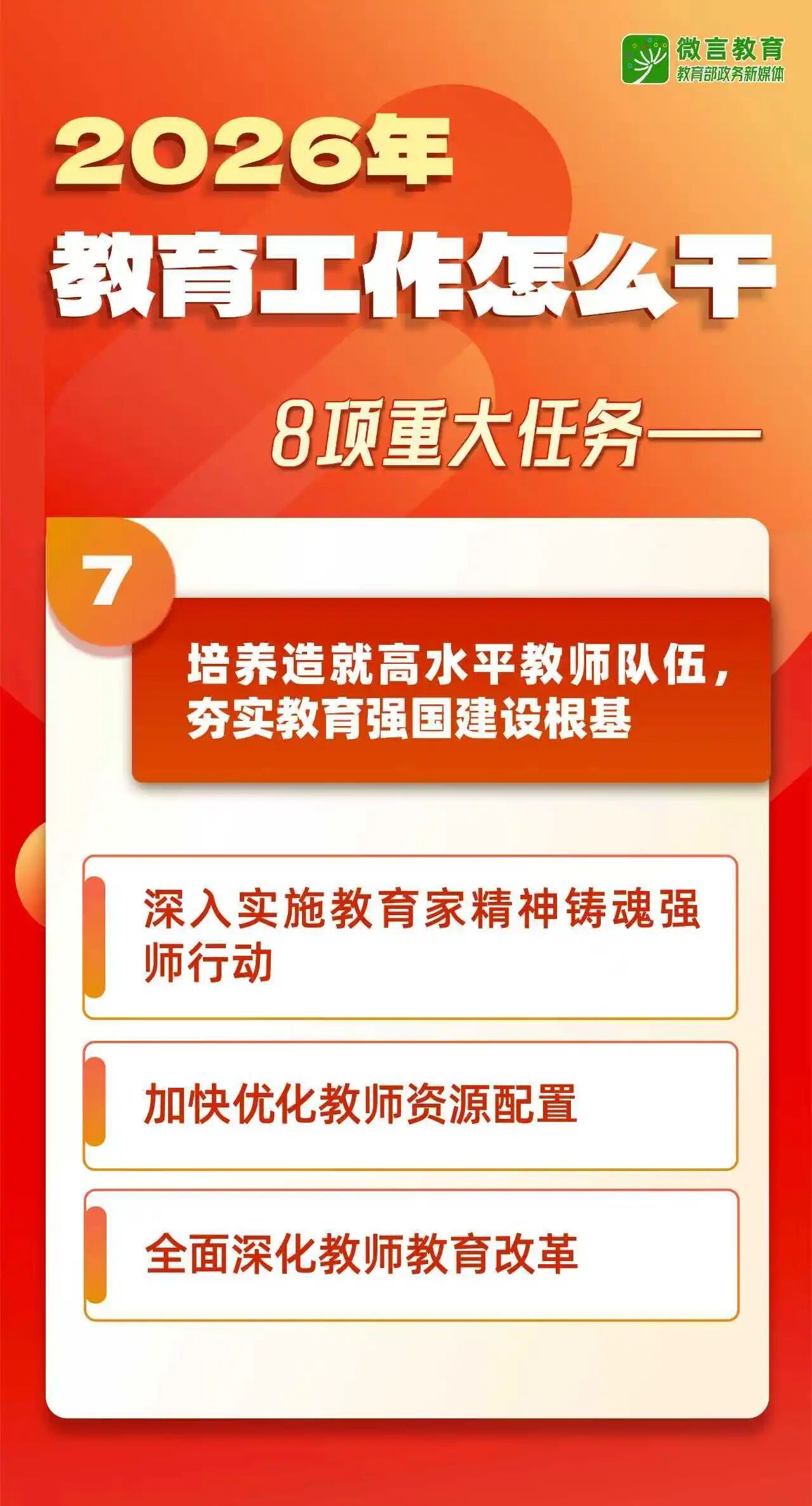 1月8日,2026年全国教育工作会议在北京召开。会议强调了哪些内容?2026年教育工作怎么干?组图为你划重点——