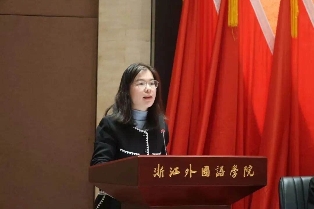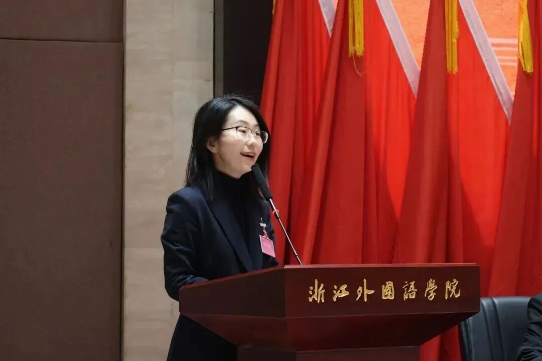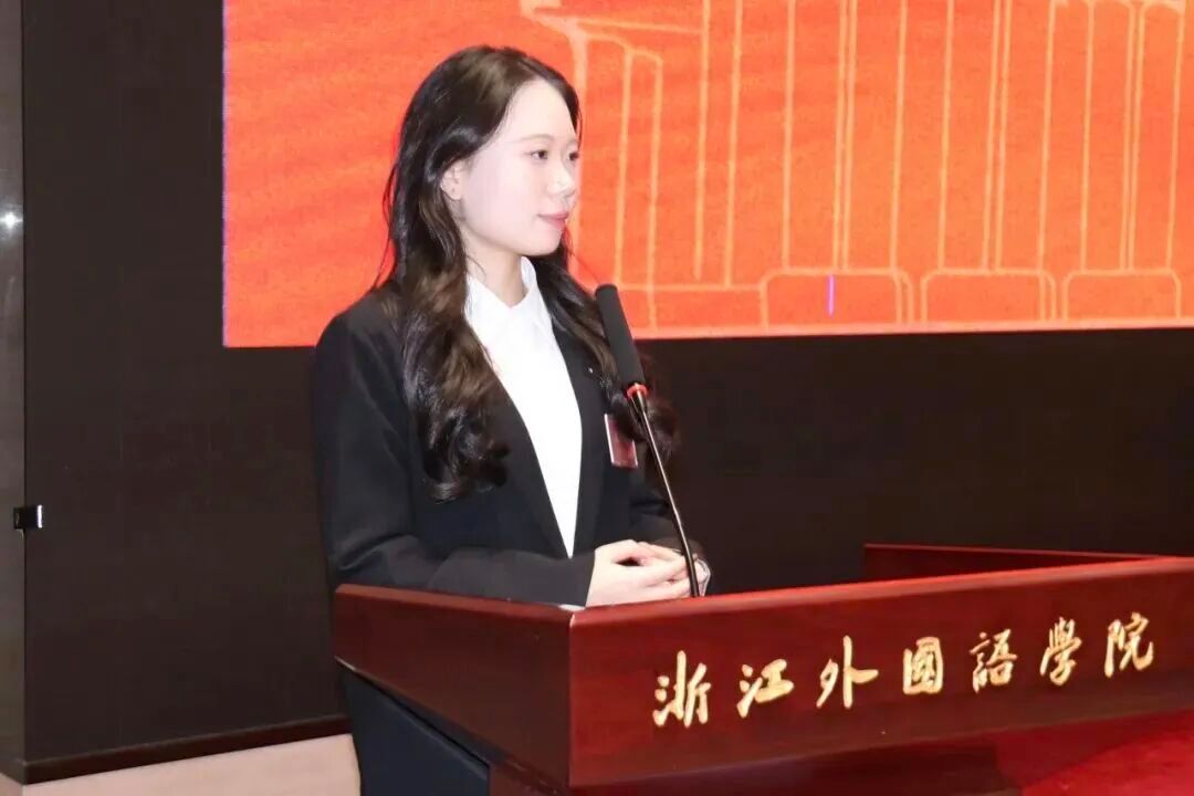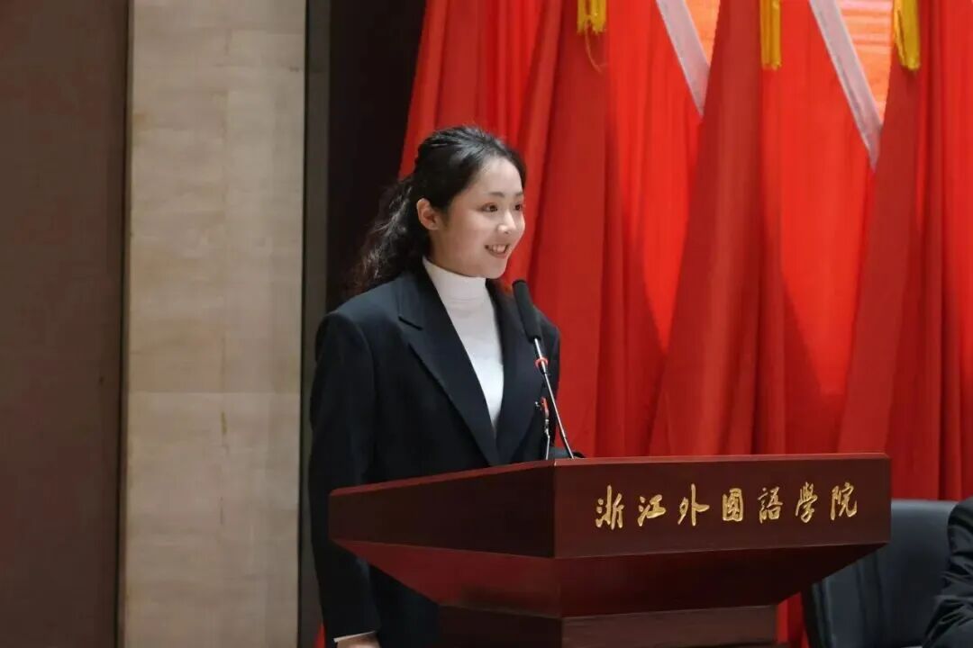 校学生会执行主席姚朱虹代表浙江外国语学院第八届学生会作题为《牢记初心跟党走,踔厉奋发启新程:团结引领全校青年在以服务新型国际关系为特色的外语名校中贡献青春力量》的工作报告。该报告对过去一年的工作做了系统性的回顾与总结,并确定了学生会今后一年的工作任务。
