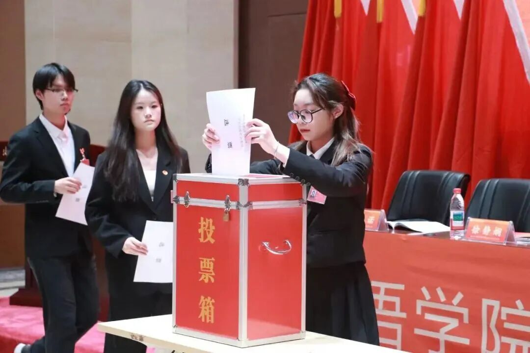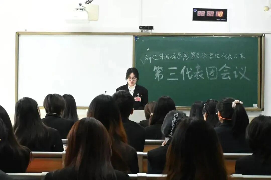 值此全校深入学习贯彻党的二十大和二十届四中全会精神之际,浙江外国语学院第九次学生代表大会圆满完成各项议程,选举产生新一届学生委员会委员和主席团成员。他们信念坚定、能力出色、斗志昂扬,必将肩负起开创我校学生会工作新局面的重任。新一届浙外学生会将继续发扬尽职尽责的组织风貌,贯彻落实学代会精神,团结带领广大同学凝心聚力、扎实工作,共同书写浙外崭新的辉煌篇章,以青春之我担时代之责!
