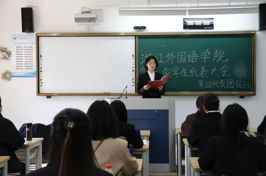 11月29日,浙江外国语学院第九次学生代表大会在同文堂举行。副校长、党委委员毛振华,党委学工部部长、学生处处长陆卫斌,教务处处长吴玲,校团委书记陈超,党委宣传部副部长张佩丽,党委组织部徐杨,以及各二级学院党委副书记、学生会秘书长出席开幕式。浙江大学、杭州医学院学生会代表到会祝贺,北京大学等高校送来贺信。全校近100名学生代表参会。各代表在会议上履职尽责、建言献策,圆满完成会议各项议程。