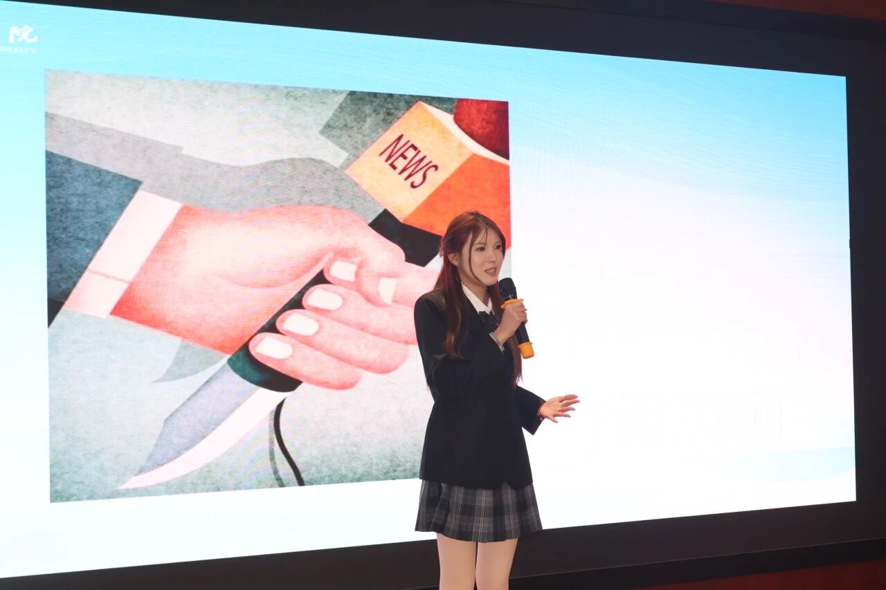 樊维娜老师对参赛选手的专业水平做出极大肯定。她表示,选手们对此次比赛都进行了充足的准备,文字优美、贴合主题、表达流畅,极大展现了选手自身的专业素质和语言水平。同时,樊老师也指出了选手们出现的细节问题并进行现场指导。樊老师强调,英语存在英音与美音的区别,选手们在选择时要注意两种不同系统在发音、语调以及在连读、浊化等方面的各自特色,充分结合自身特点,在舞台上自信展现,从容应答。