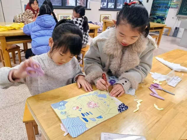 2025年12月11日、18日、22日及25日,民艺社赴闲林小学开展社团课与40分钟拼布教学,社团代表与该校学生共同参与。活动以智慧堆绣为特色,深耕传统工艺传承,推动传统文化走进校园、走近青少年,让民间技艺在基础教育中扎根传承。