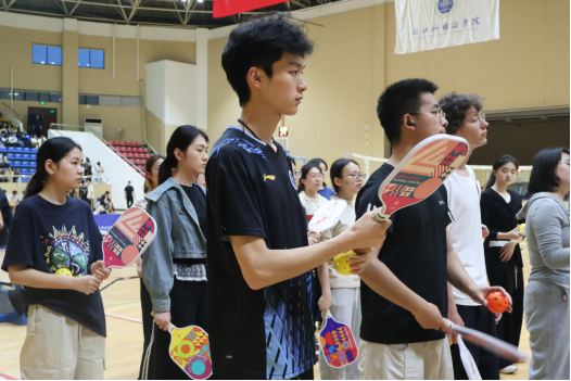 同学们握着球拍